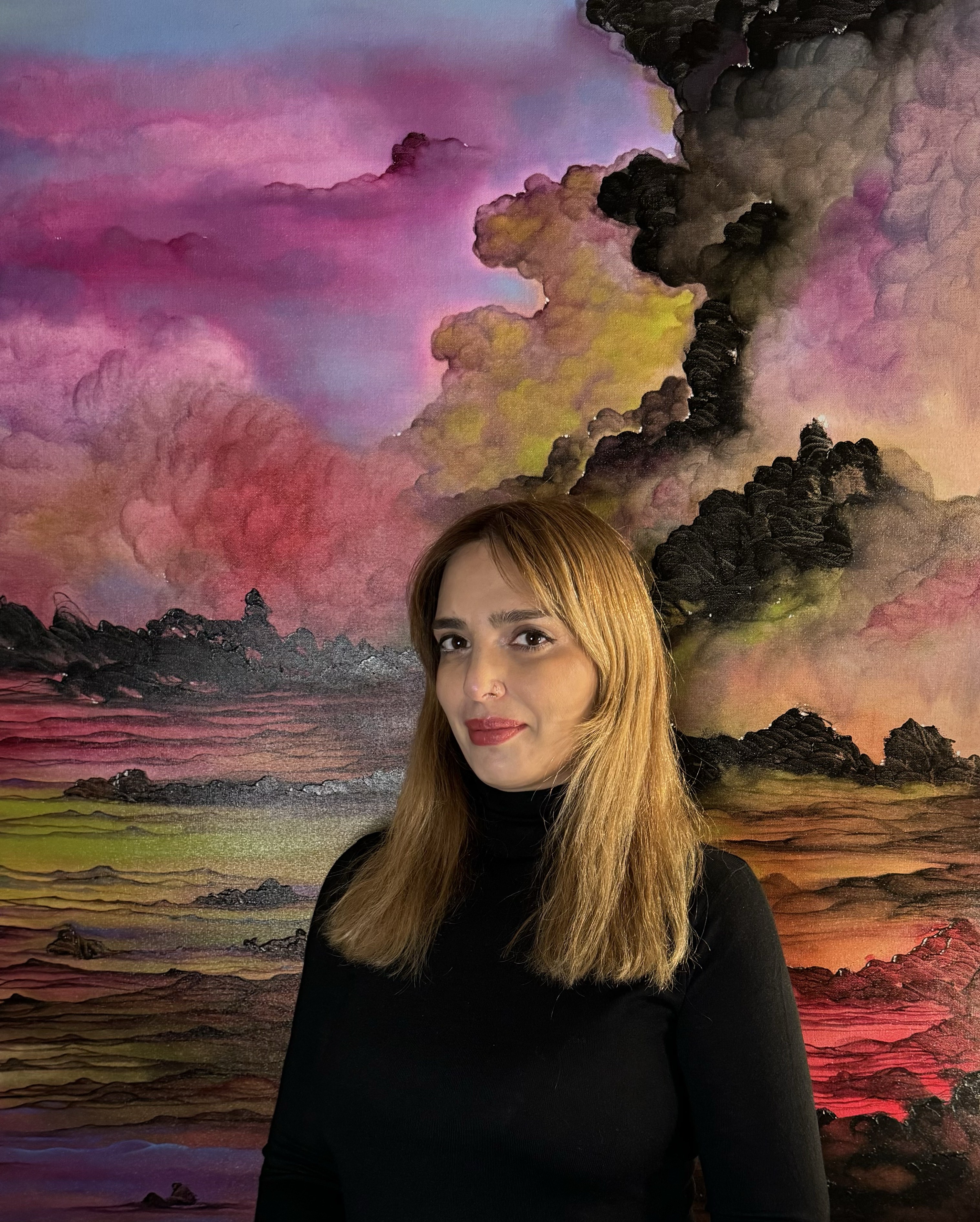 My paintings and drawings focus on the power of creation and the potential of imagination. Using explosions as a visual metaphor, I explore the creation of new worlds, and possibilities from the chaos of destruction. A moody and mysterious atmosphere reflects the character and intensity of the energies that fascinate me. Beginning with the visual reference to explosions, I use color to invent new worlds. My work records my ongoing exploration of the metaphysical and spiritual aspects of energy—the invisible forces that shape the world around us. Through my work, I invite others to explore their own potential and embrace the power of imagination.